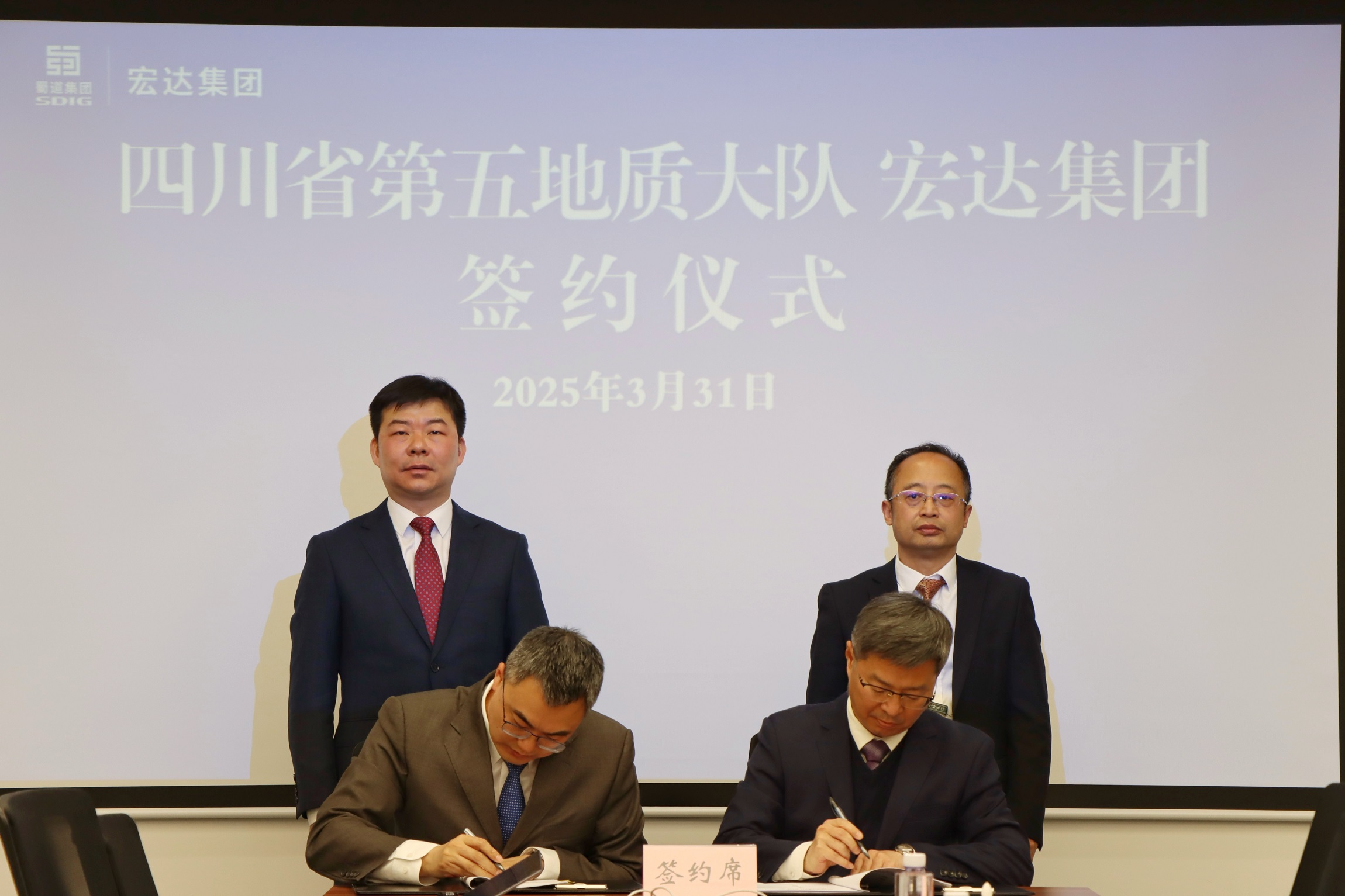 3月31日,宏达集团与四川省第五地质大队(以下简称“五大队”)举行签约仪式。宏达集团党委书记、董事长胡恩来与四川省地质局二级巡视员毛晓泉见证签约并致辞,宏达集团党委副书记、副董事长、总经理陈扬波,五大队党委副书记、队长王晓辉代表双方签署战略合作协议。